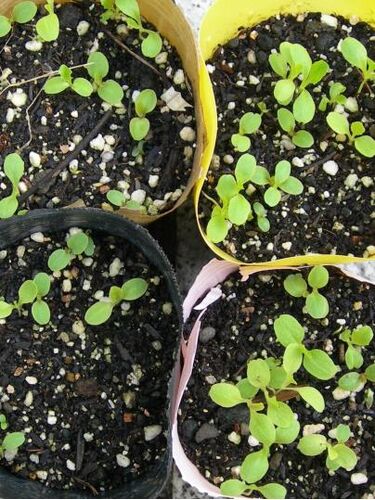 レタスはサラダに毎日のように使うので、毎年、栽培しています。 9月初めに、リーフレタス、ロメインレタスなど数種類の混ざった種を蒔きました。 1週間ほどで芽が出てきました。子葉が2枚出ています。