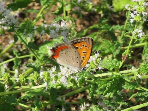 畑に植えたハーブ類が次々と花を咲かせています。 バジルやミントなどの花の蜜を吸いに、いろいろな昆虫がやって来ます。 小型のチョウやハナアブが、盛んに花から花へと飛びまわっています。 キアゲハはせり科の植物が食草で、ニンジンやフェンネルに卵を産…