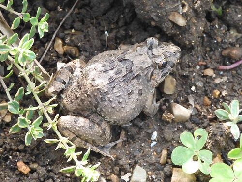 雨上がりに畑に行ったら、大きなカエルを見つけました。 ハーブの茂みに隠れていました。 カメラを向けると、ずんぐりむっくりとした体からは、想像できないほど、素早く動いて、逃げていきました。 野菜苗を植えるために土を掘っていると、オケラが顔を出し…