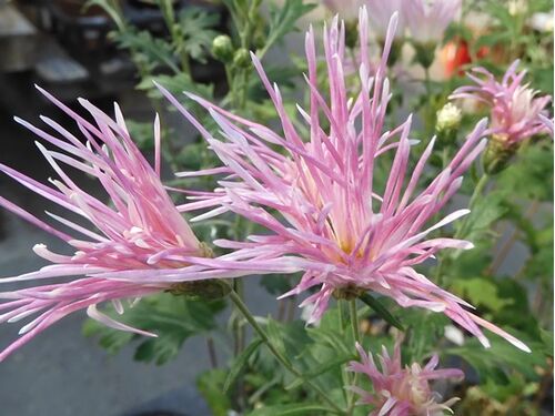 嵯峨菊は、キク科キク属の多年草で、京都嵯峨野の大覚寺にある、大沢池菊ヶ島に自生していた野菊を元に、主に江戸時代に、品種改良が進められた古典菊の一種です。 花径7~8㎝の大輪で、糸のように細い花弁が、特徴の八重咲きの優雅で繊細な花です。 嵯峨天…