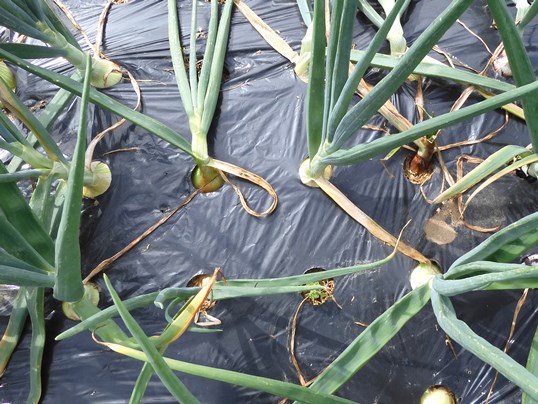 玉ねぎは早生と中生、紫の3種類を植えてあり、早生種の収穫を始めました。