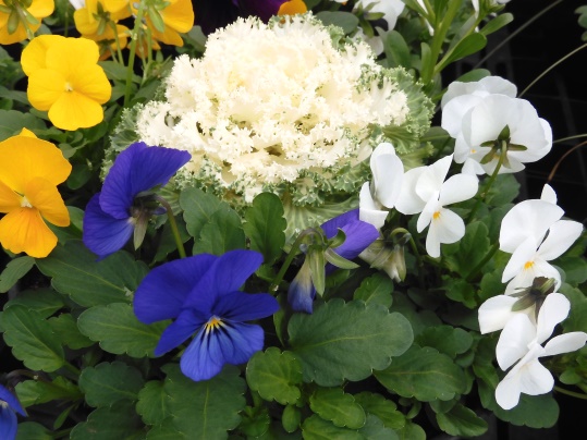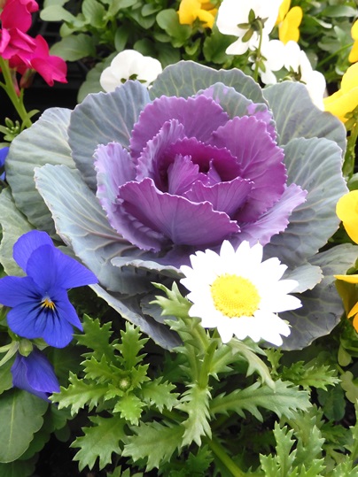 2022-12-14 葉ボタンの寄せ植え ハーブ 草花 葉ボタンは、正月の飾りに欠かせない植物です。 寒さに強く、丈夫で育てやすく、秋から春まで長い間、楽しめます。 葉色は白、ピンク、紫、緑などで、葉の形は丸葉の他に、ケール形、ちりめん、切り葉形などいろいろとあります。 葉色の異なる、葉ボタンの寄せ植えも素敵ですが、葉ボタンと冬咲きの他の花を組み合わせた寄せ植えは、お互いが引き立ち、豪華な感じになります。 いろいろな葉色、葉形の葉ボタン 葉ボタンの寄せ植え 葉ボタンと冬咲きの花の寄せ植え