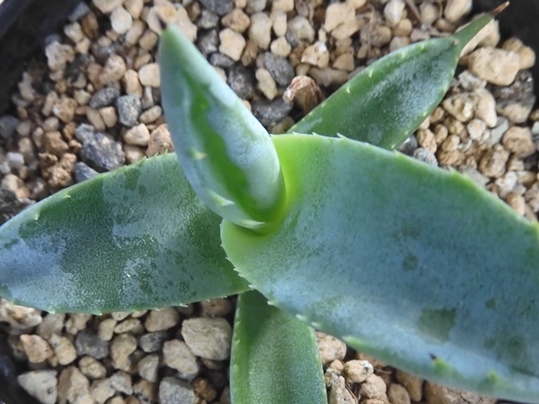 葉は多肉質で、根元から縦長の葉が放射状に広がります。