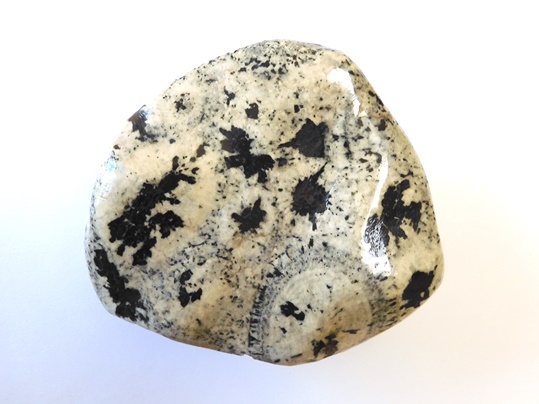 球状閃緑岩は、閃緑岩の中で、斜長石を主成分とする無色鉱物と、角閃石や黒雲母から成る有色鉱物が交互に重なり、同心円状や放射状の構造になっているものです。