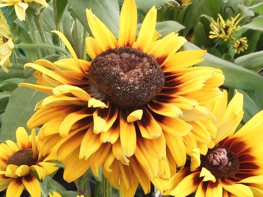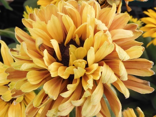 2025-08-09 サンベキア ハーブ 草花 サンベキアはキク科ルドベキア属の宿根草で、ルドベキアを品種改良した栄養系品種です。 花径10㎝程の大輪で、花色は黄、オレンジ、茶、複色です。 開花期は7~10月です。 草丈は40~50㎝で、分枝性が良いです。 暑さに強く、従来のルドベキアと比べて、蒸れにも強いです。 寒さにも強く、地植えで冬越し可能ですが、冬は地上部は枯れ、翌春に芽吹きます。 日当たりと、水はけの良い場所を好みます。 グラフィティキャラメル グラフィティスカーレット グラフィティチェリー グラフィティピーチ